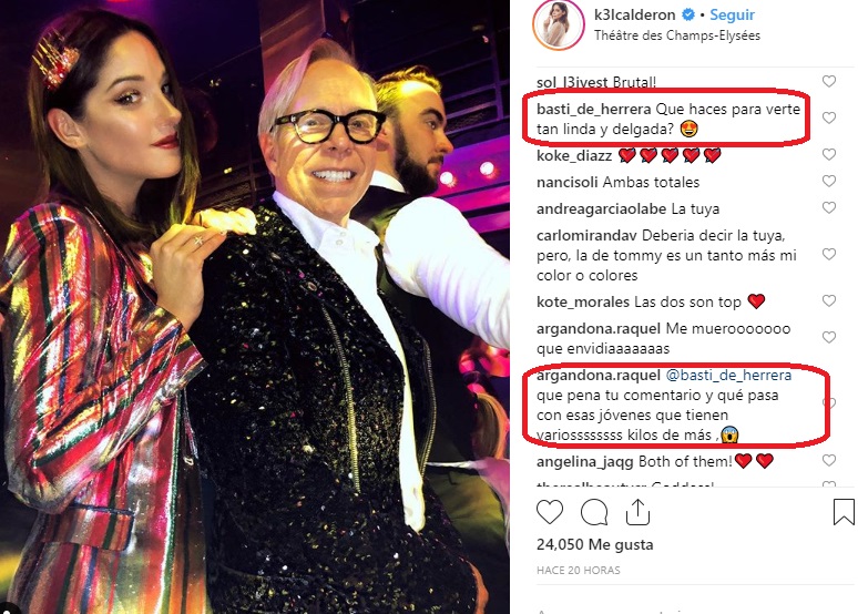De hecho, uno la polémica se encendió porque un seguidor, @basti_de_herrera dejó el siguiente comentario que en una publicación de la fashionista: “Que haces para verte tan linda y delgada? 😍”