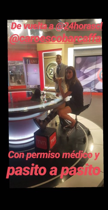 Quien entregó una explicación a esto, fue Iván Núñez, ya que a través de sus Instagram Stories publicó una foto de su compañera de labores con una bota ortopédica y un cajón para afirmarla. “De vuelta a 24 Horas Caro Escobar (…) Con permiso médico, pasito a pasito”.