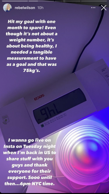 En una historia de Instagram este fin de semana dijo: "¡Alcancé mi meta con un mes de sobra!!.