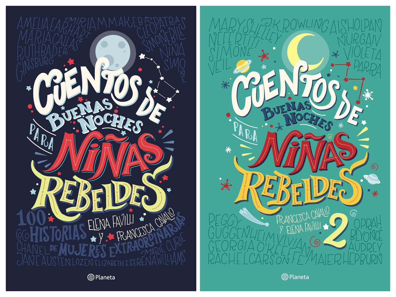 Como por ejemplo, Marie Curie, Frida Kahlo, Coco Chanel, entre otras. Además, hay una segunda parte de este libro llamado “Cuentos de buenas noches para niñas rebeldes II”.