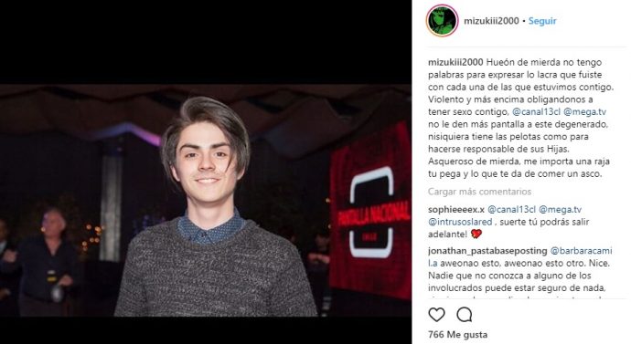 “Violento y más encima obligándonos a tener sexo contigo, no le den más pantalla a este degenerado, ni siquiera tiene las pelotas como para hacerse responsable de sus hijas. Asqueroso de mierda, me importa una raja tu pega y lo que te da de comer", era parte del texto que escribió la joven para acusar a su ex pololo.