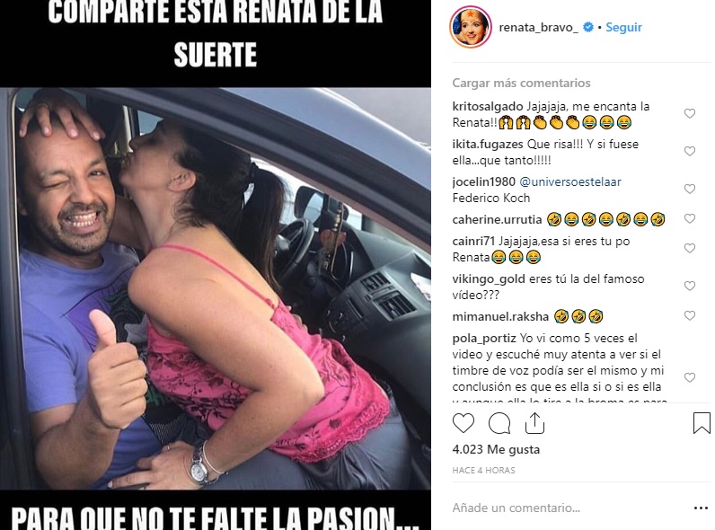 Pero la noche de este martes, Renata decidió aclarar en Instagram que no es ella la del video. “Al parecer, supuestamente, soy yo con otra persona en un auto”, comenzó diciendo la actriz.