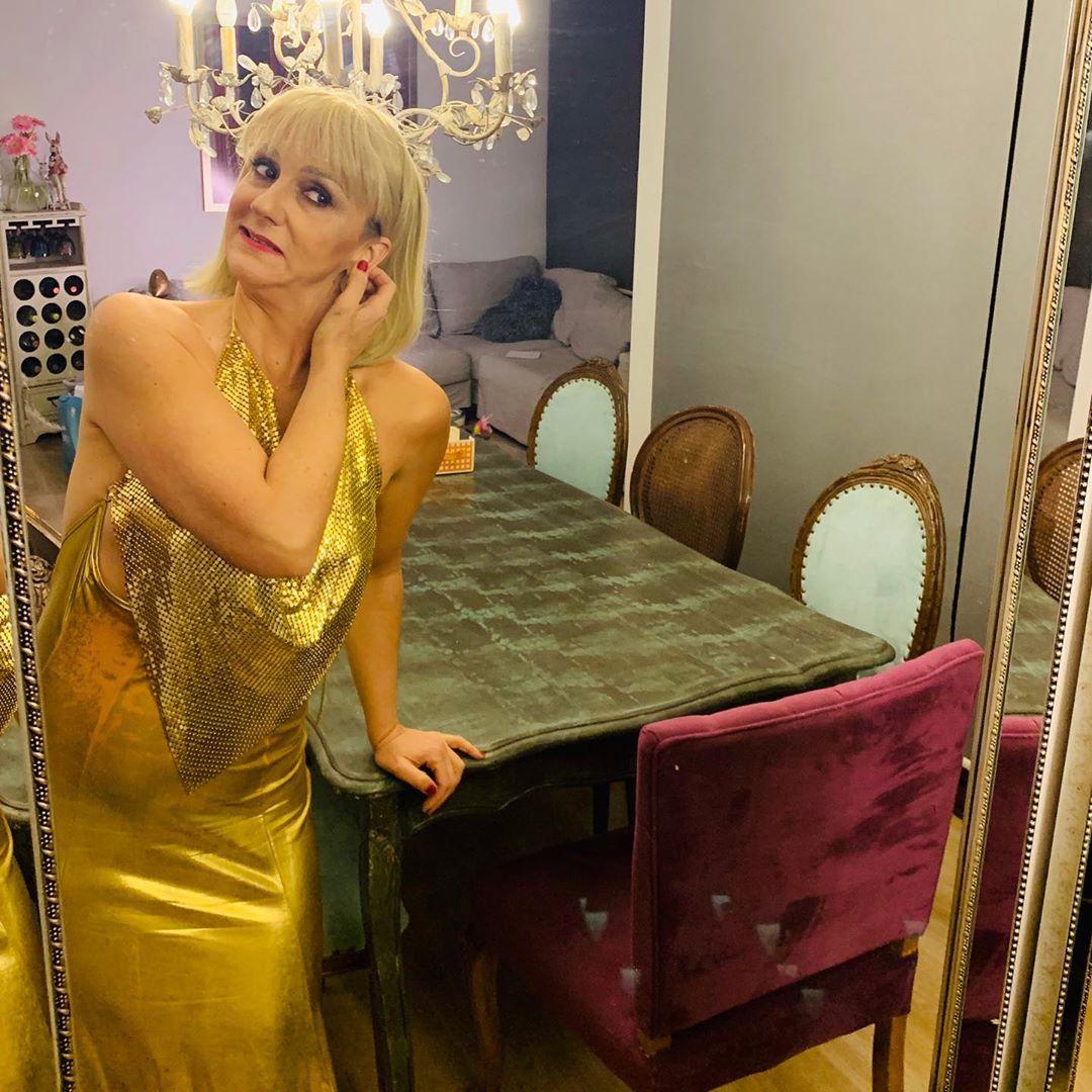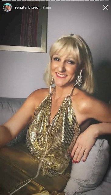 En el caso de la actriz, esta sorprendió al personificar a la reconocida animadora Raquel Argandoña en el pasado. Para ello, Bravo eligió un brillante vestido dorado y una peluca de una melena rubia platinada con chasquilla.