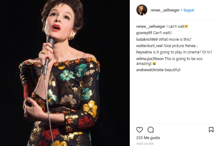En la nueva producción, Zellweger encarna a la icónica actriz Judy Garland, estrella de El mago de Oz. Para eso, tuvo que dejar atrás su pelo rubio y córtarselo aún más corto.