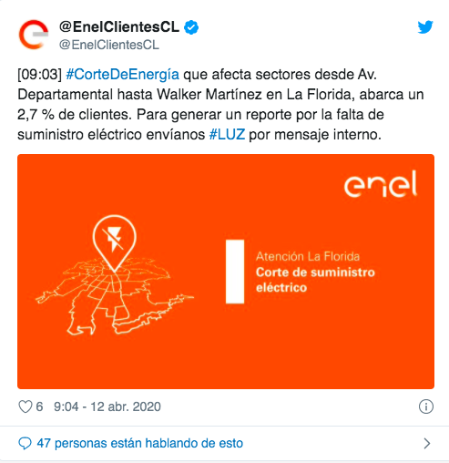 En La Florida, se reportan cortes en los sectores de las avenidas Departamental y Walker Martínez, abarcando un 2,7 por ciento de clientes afectados.