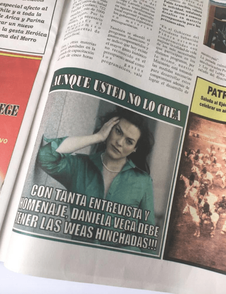 Indignación generó un aviso publicado este lunes en "El Chinchorro" de Arica, que muestra la imagen de la actriz transexual acompañada del texto: “Aunque usted no lo crea, con tanta entrevista Daniela Vega debe tener las weas hinchadas”.