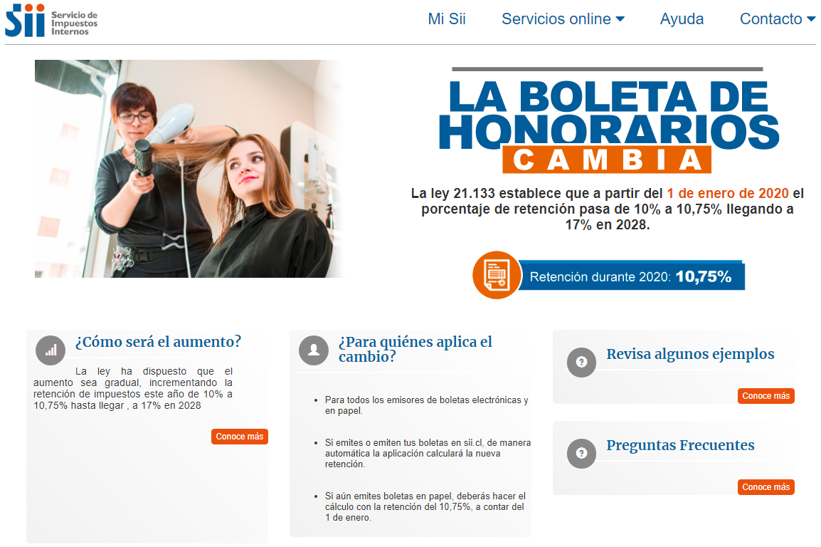 Esta semana, el Servicio de Impuestos Internos (SII) recordó que a partir del 1 de enero de 2020, la retención de la boleta de honorarios cambiará de 10% a 10,75%.