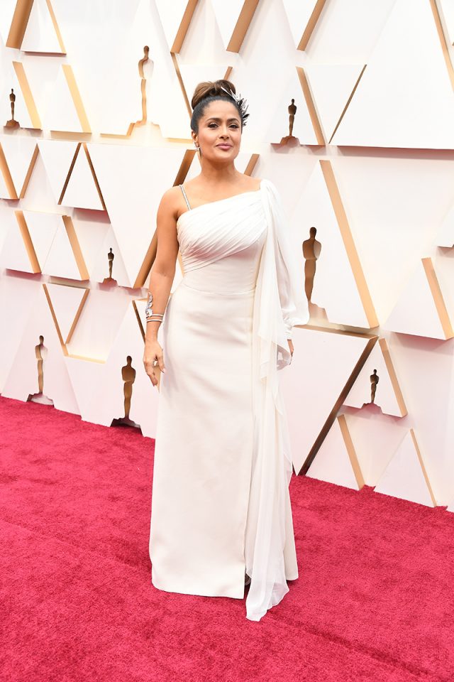 Salma Hayek, de blanco, con un diseño firmado por Gucci.