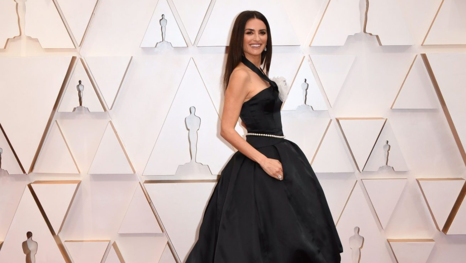 La española Penélope Cruz lució un vestido Chanel de inspiración vintage, con cinturón de perlas y una camelia.