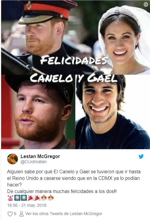 En redes sociales, durante la boda real, la Duquesa de Sussex fue comparada por su parecido con el actor mexicano, Gael García.