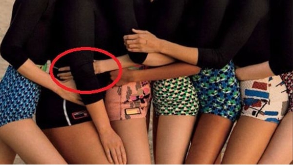 Si se aprecia bien la foto, la mano de Gigi Hadid es extremadamente larga, lo cual evidencia un exceso del retoque digital, para hacer ver a Graham más delgada. Además usuarios de Internet expresaron que la maniquí XL es la única que aparece cubriéndose el muslo.