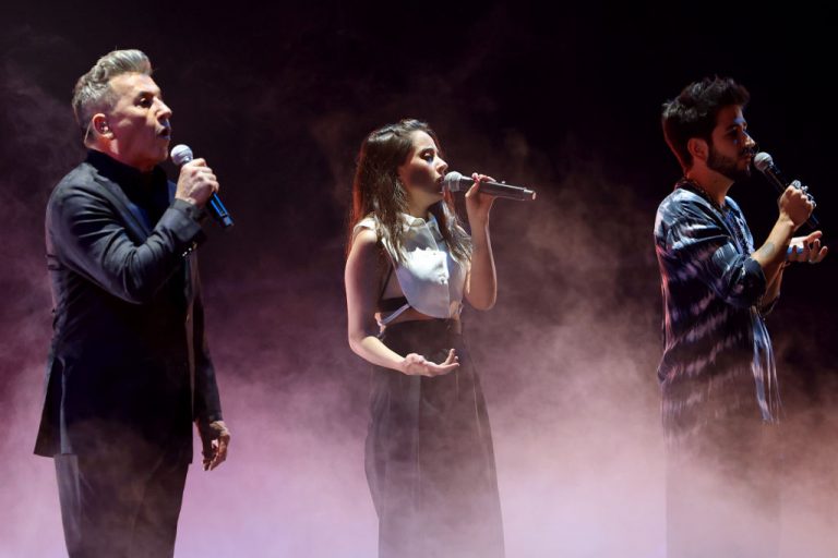 Sobre un simple escenario por el que ya había pasado Maluma, Prince Royce, Natti Natasha, Gloria Trevi y CNCO se presentaron los cinco Montaner. Iluminados por diferentes tonos violetas y azules, una suave capa de humo los cubrió durante toda la presentación. En el fondo, habían bailarinas vestidas con un largo traje blanco, y las pantallas simularon el fondo de una iglesia.