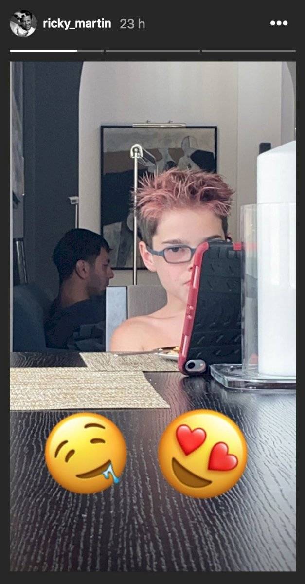 El cantante mostró que la cabellera de su hijo pasó a ser de un color rosado. A Ricky debió gustarle mucho el nuevo look de su hijo, ya que normalmente no comparte muchas postales o registros de sus retoños.