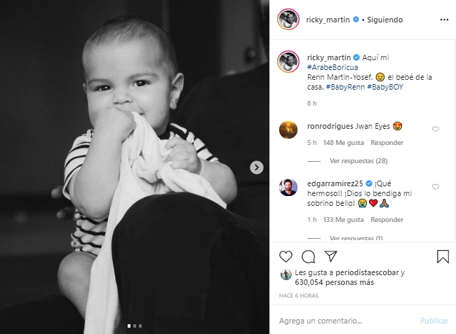 'Aquí mi #ÁrabeBoricua Renn Martin-Yosef. El bebé de la casa. #BabyRenn #BabyBoy', escribió el cantante puertorriqueño este martes para acompañar las fotos del bebé.