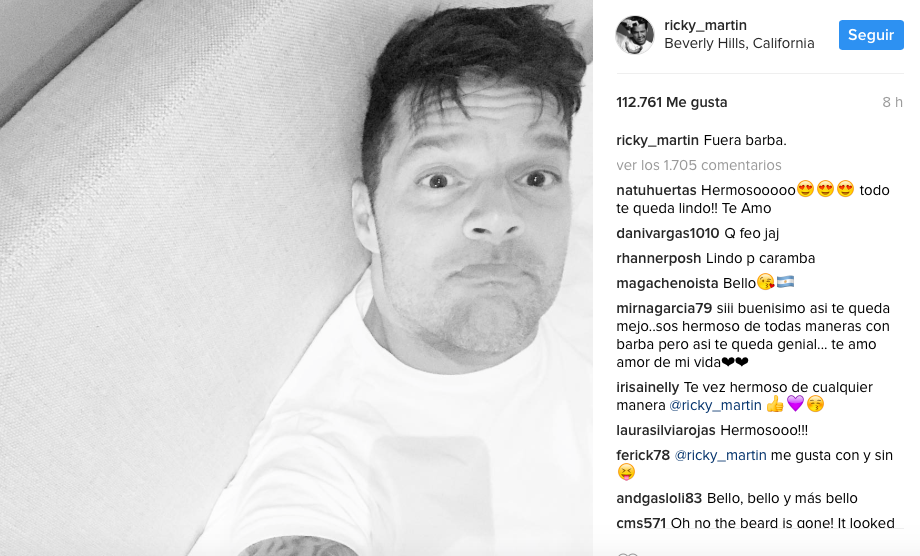 Subió una imagen en donde sale sin su barba y nos recuerda al Ricky de años atrás. ¿Qué te parece su cambio?
