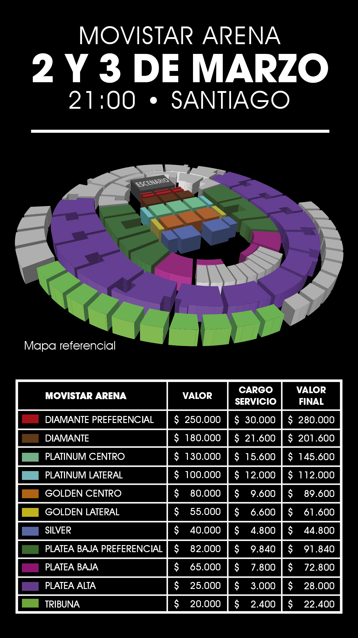 Pero eso no es todo porque por supuesto una parada obligada para Ricky Martin es Santiago donde dará 2 conciertos en el Movistar Arena, los días 2 y 3 de marzo.
