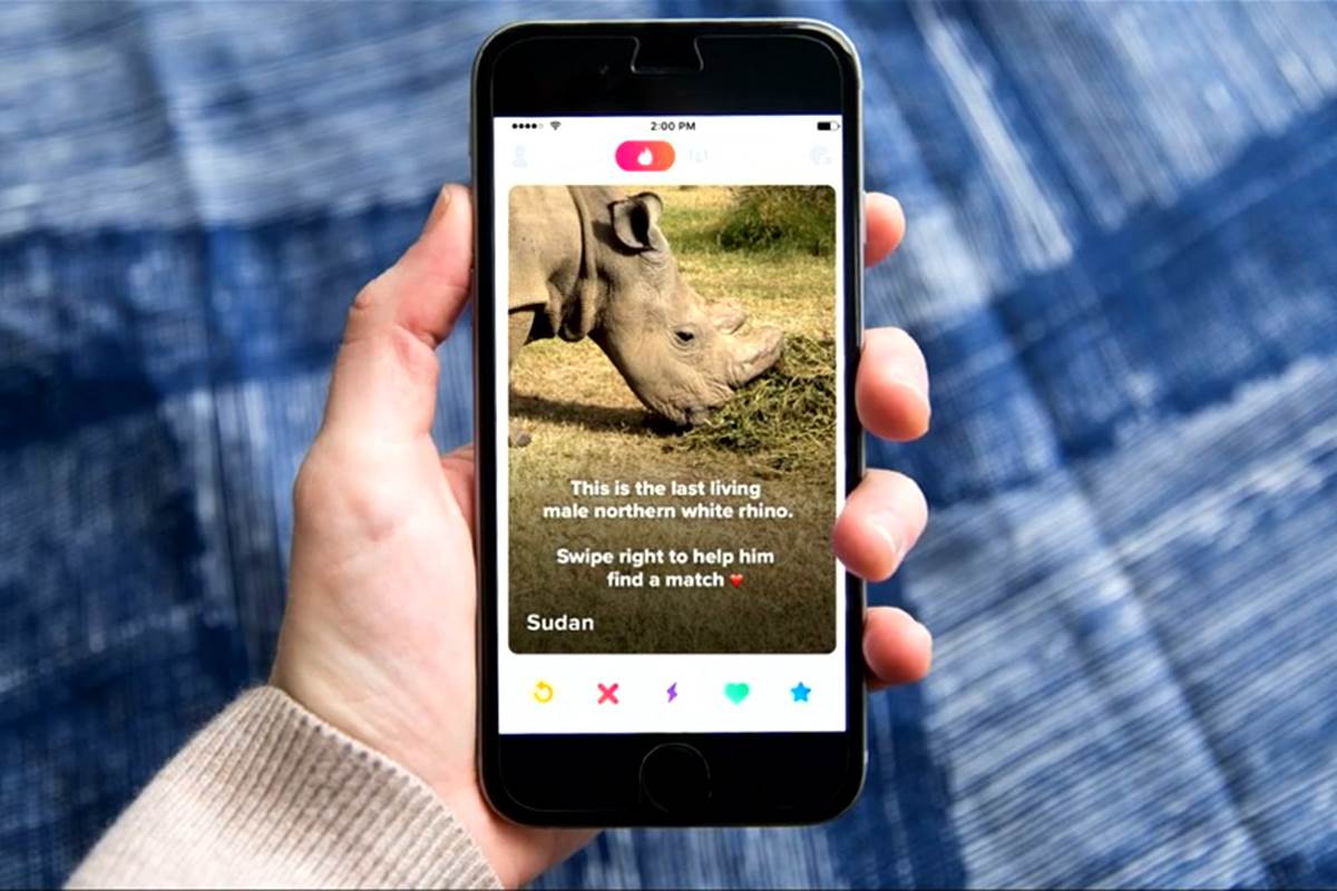 Sí, estamos hablando de algo real. Y es que la aplicación para buscar a tu media naranja se unió con la reserva Ol Pejeta, que busca proteger a Sudán, el último rinoceronte blanco macho en todo el mundo.