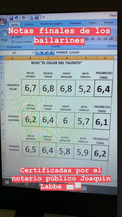 Luego de la gran polémica que se desató en redes sociales, el programa utilizó su cuenta de Instagram para transparentar la nota de cada jurado y la del público. Además de mostrar la planilla con las calificaciones, aseguraron que estaban certificadas por el notario público Joaquín Labbé.