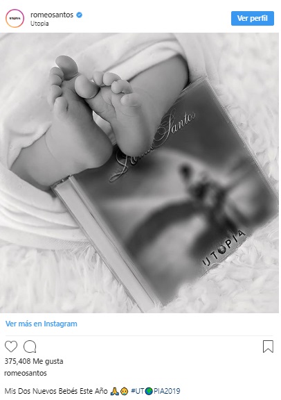 Y es que el bachatero publicó una foto en la que aparecen los pies del pequeño, junto a la portada de su nuevo álbum, "Utopía".