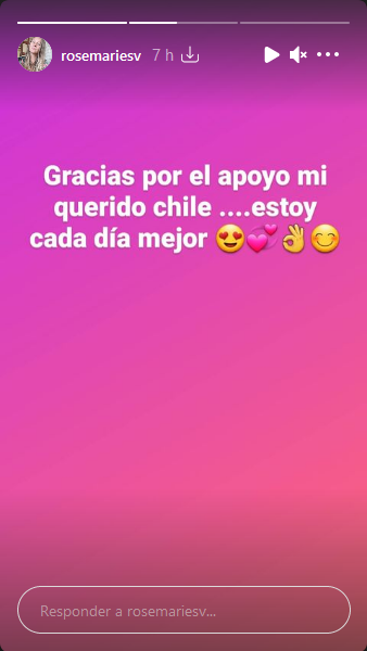 "Gracias por el apoyo mi querido Chile... Estoy cada día mejor", expresó en sus stories.