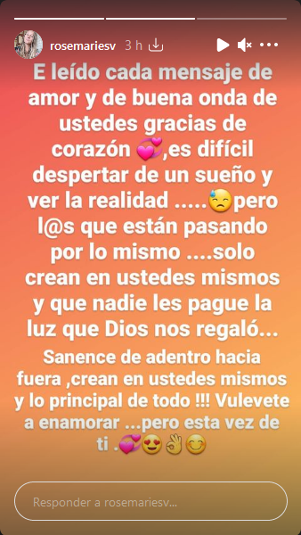 A través de sus stories de Instagram (@rosemariesv), la ex chica reality habló sobre los complejos hechos que han ocurrido últimamente en su vida.