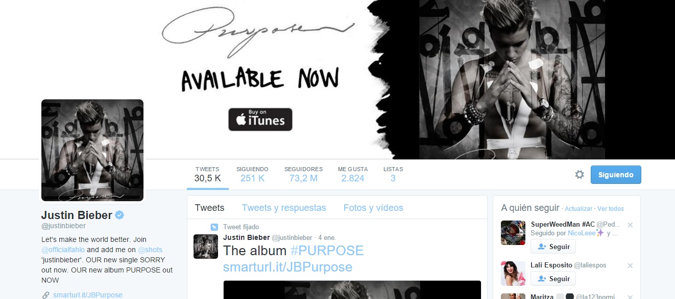 Le sigue Justin Bieber, con un poco más de 73 millones de seguidores.