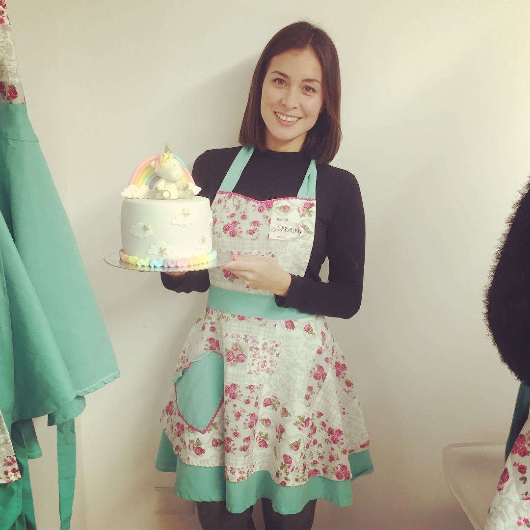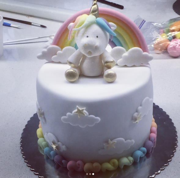 "¡Hoy tuve un día diferente, un día especial donde lo pasé demasiado bien! ¡Tomé en @moennestudio el taller de preparación, horneado y decoración de tortas! ¡Me siento tan feliz de haber aprendido a hacer tortas tan lindas!", escribió orgullosa junto a fotos de us creación, una bella torta de con diseños de arcoiris y un unicornio.