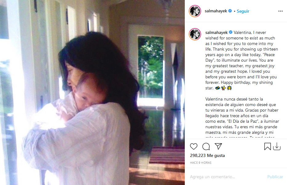 Posteriormente, Salma Hayek subió una foto junto a Valentina de bebé, justamente este 21 de septiembre que es el día de su cumpleaños.