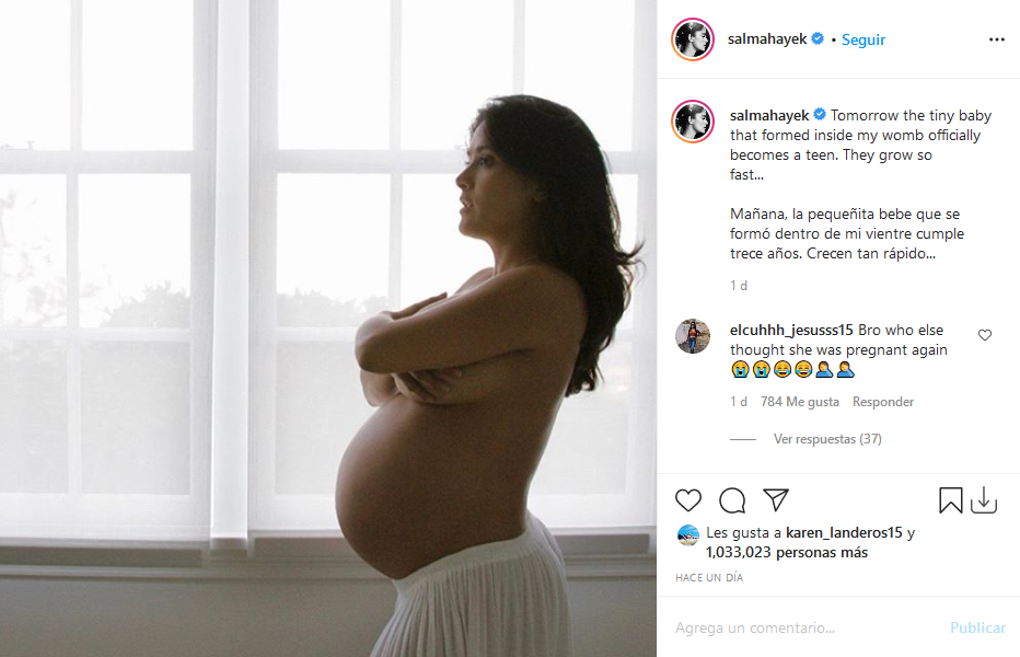 "La pequeñita bebé que se formó dentro de mi vientre cumple trece años. Crecen tan rápido", escribió la nominada al Oscar por "Frida".