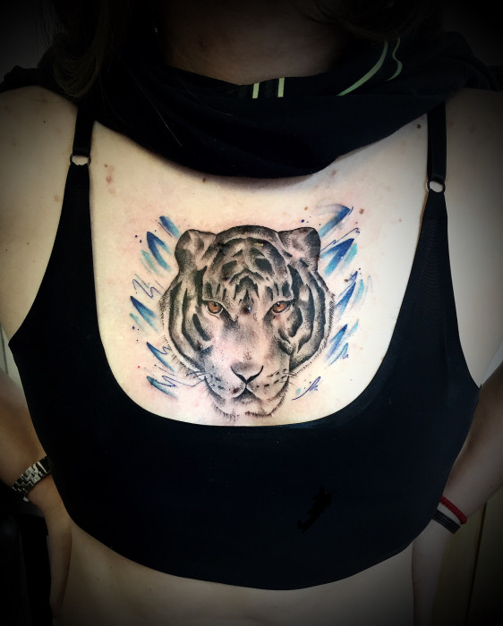 A través de su cuenta de Instagram, Scarleth Cárdenas mostró su nuevo gran tatuaje, el que está situado justo en su pecho: es un tigre blanco.