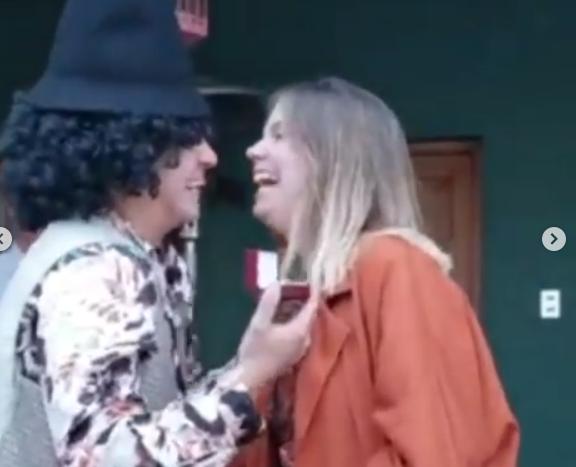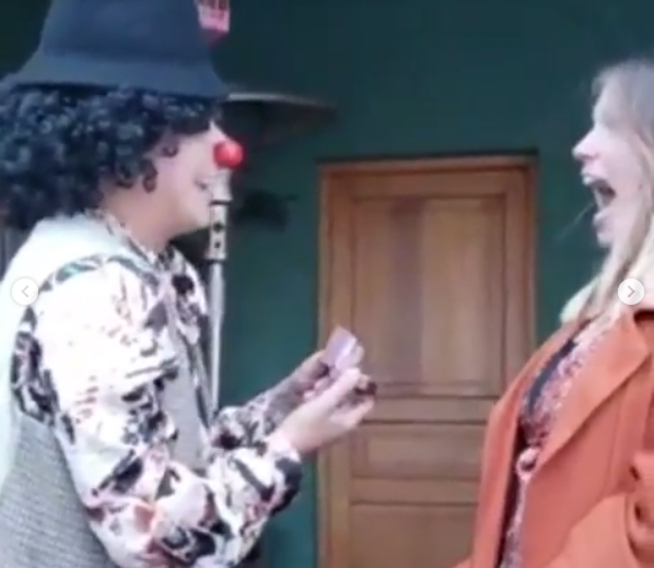 El actor interpretó al payaso 'Luo', para entretener a los presentes y su acto final sorprendió sobre todo a Ornella. El payaso pidió su ayuda para hacer aparecer un pequeño objeto y... ¡sorpresa! era una cajita que contenía un anillo de compromiso con el que pidió su mano.