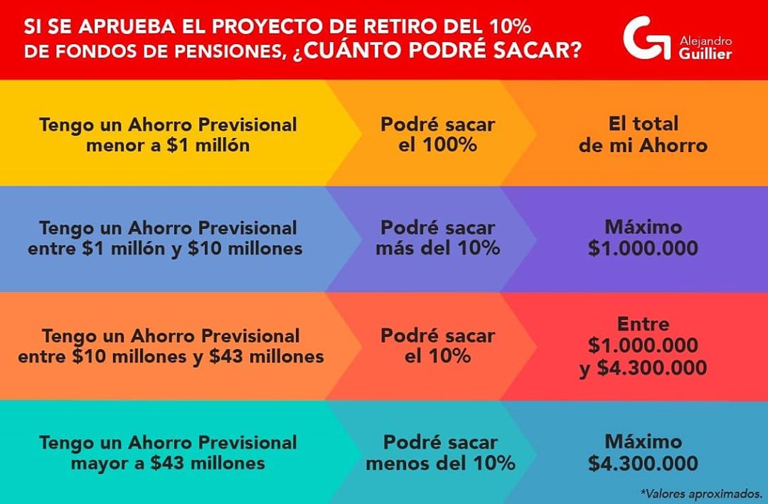 De transformarse en Ley, la iniciativa propone hasta el momento que el monto mínimo a retirar será de 35 UF (1 millón de pesos apróximadamente), mientras que el máximo será de 150 UF (4.3 millones).