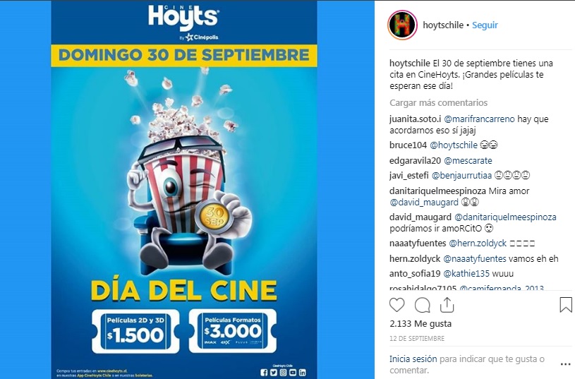 CineHoyts tendrá entradas a $1.500 pesos para todas las funciones en formatos 2D y 3D en salas tradicionales; y $3.000 pesos para cintas en Sala IMAX, 4XD, PLUUS y PREMIUM CLASS y se podrán comprar en preventa desde el miércoles 26 de septiembre a las 12:00 hrs. a través de boleterías y plataformas digitales de CineHoyts.