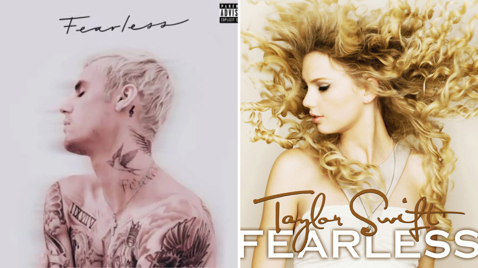 Además del mismo título para el álbum, el parecido de las imágenes de las portadas también ha llamado la atención, pues Justin Bieber hace hasta la misma pose que Swift.