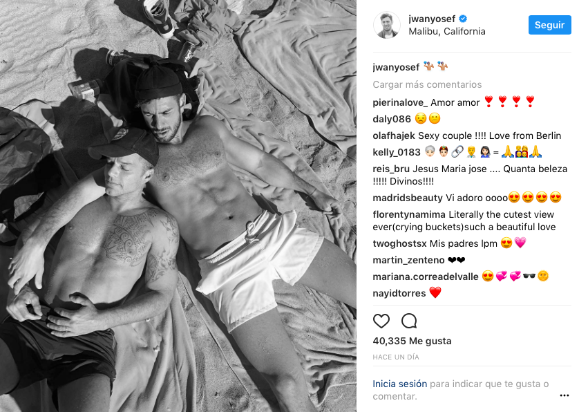Así es que cuando ambos publican una foto en la que los vemos sin polera, descansando en la playa, las redes sociales no se hacen esperar para llenarse de comentarios buena onda para el guapo Ricky y su novio, el artista de origen sirio Ywan Josef.