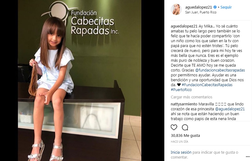 Según reveló, Águeda López, la esposa de Luis Fonsi, en su cuenta de Instagram, la pequeña Mikaela de 7 años, se cortó su largo pelo y donarlo a una muy buena causa.