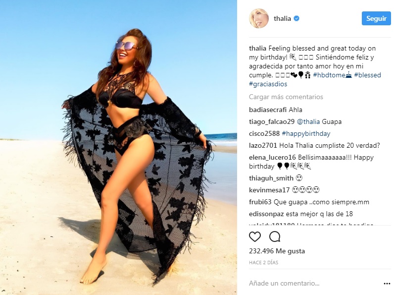 Y eso no es todo, porque la cantante y actriz mexicana quiso celebrar su cumpleaños, gritándole al mundo lo bien que se ve y se siente. Para eso, Thalia publicó en sus redes sociales una foto luciendo su escultural figura en un sexy bikini negro.