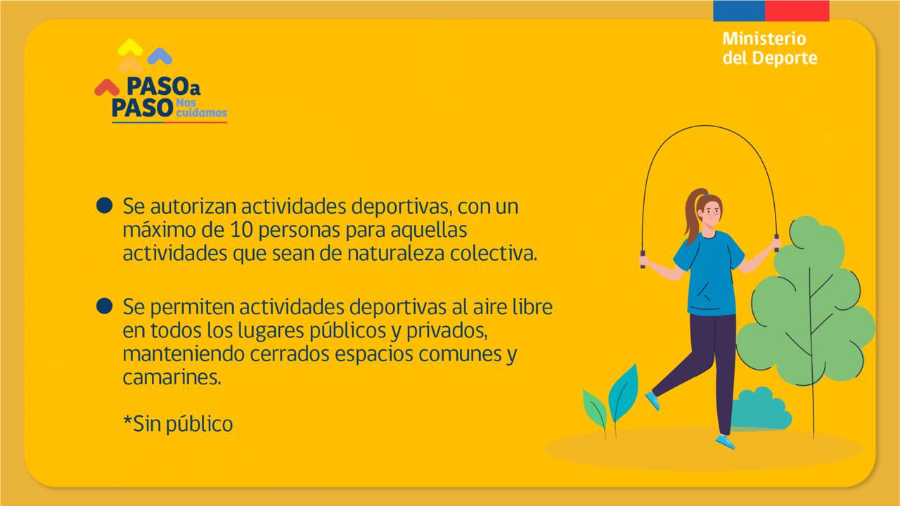 Cabe recordar que, en comunas en fase de Transición, la cuarentena se mantiene sábado, domingo y festivos. Es decir, no se podrá realizar deporte al aire libre en esos días.
