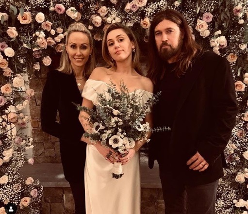 Miley Cyrus, quien contrajo matrimonio con Liam Hemsworth el domingo 23 de diciembre, lució un vestido de corte minimalista encomendado a la diseñadora británica Vivienne Westwood.