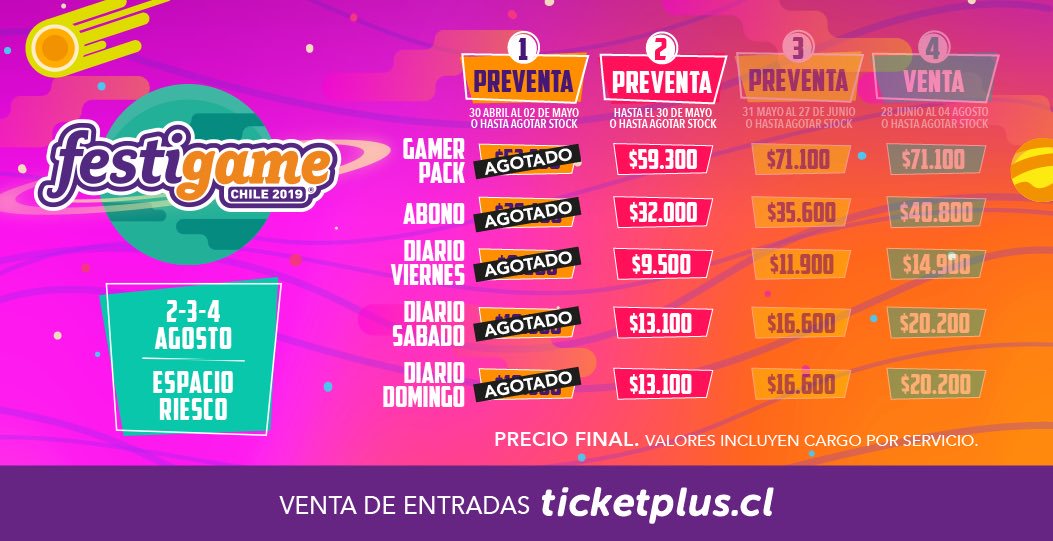 Reúnete con otros gamers como tú en la gran fiesta de los videojuegos ¡FestiGame Fanta 2019! Del 2 al 4 de agosto en Espacio Riesco, aprovecha los precios preferentes de la tercera hasta el 27 de junio a través del sistema TicketPlus.