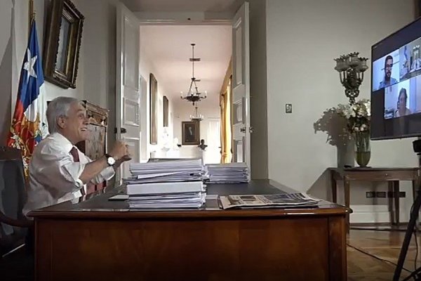 Desde La Moneda, el mandatario firmó esta nueva norma, en contacto a distancia con la ministra de Trabajo, María José Zaldívar, el subsecretario de Trabajo, Fernando Arab y con otras dos personas que cumplían sus funciones por el teletrabajo.