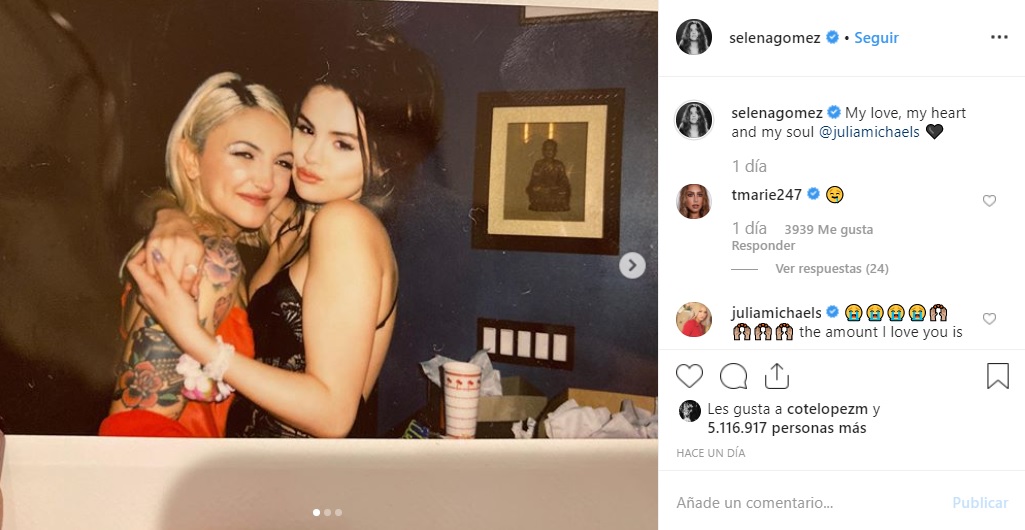 En redes sociales la intérprete de 27 años tampoco esconde su amor por su amiga. Recientemente Selena compartió una publicación donde se refiere a Julia como "mi amor, mi corazón, mi alma" e incluso compartió en sus historias de Instagram una foto del momento en que se besaron.