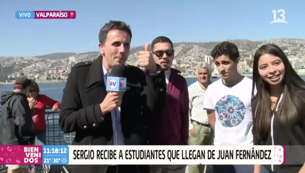 Sin embargo, pasadas las 11 de la mañana de este martes, el periodista reapareció en pantalla conversando desde Valparaíso con el Ministro de Defensa, Alberto Espina, y también dándole la bienvenida a los estudiantes que llegaban desde Juan Fernández a bordo de la barcaza Rancagua.