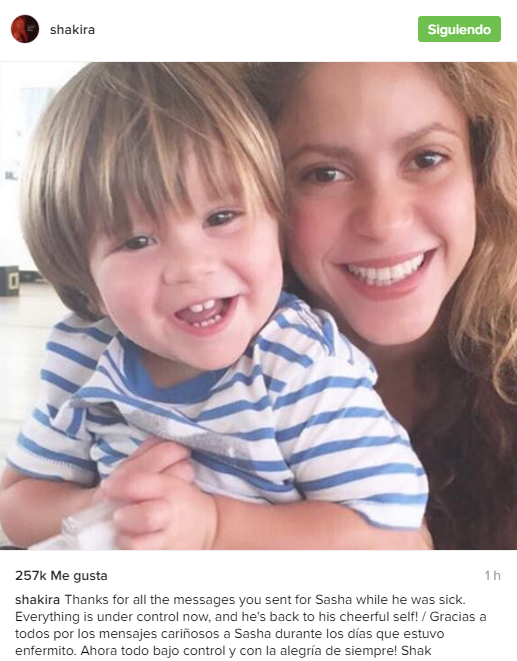 Mucho se rumoreó, primero, sobre la salud de su hijo Milán y luego del pequeño Sasha. Finalmente hoy, la colombiana aclaró el tema, aprovechando de agradecer la preocupación.