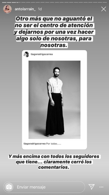 "Otro más que no aguantó el no ser el centro de atención y dejarnos por una vez hacer algo solo de nosotras, para nosotras. Y más encima con todos los seguidores que tiene... claramente cerró los comentarios", expresó Larraín.