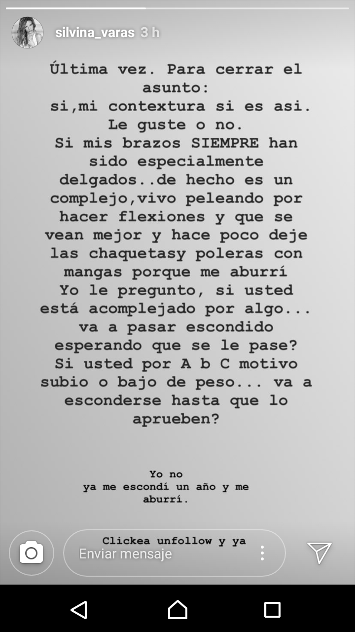 Luego de ser criticada en los últimos días por su extrema delgadez y tener que dar explicaciones, Silvina Varas quiso cerrar el tema a través de una reflexión que publicó en la web.
