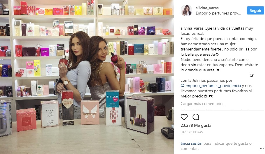A través de redes sociales, publicó una foto junto a Julia, donde vemos a las dos exchicas realities promocionar una tienda de perfumes. La imagen esta acompañada de un emotivo texto que decía: "Que la vida da vueltas muy locas; es real.