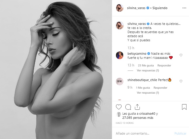 A través de su cuenta de Instagram, Silvina Varas compartió una delicada foto en topless en blanco y negro.