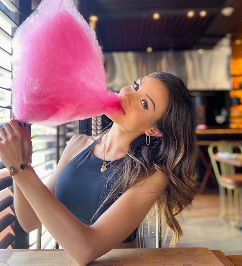 "¿Por qué no te sacas fotos en las marchas?", le preguntó la mujer en una publicación donde la ex "Doble Tentación" aparece comiendo un algodón de azúcar. Ella le contestó: "Porque me interesa ir a la marcha, no mostrártelo".