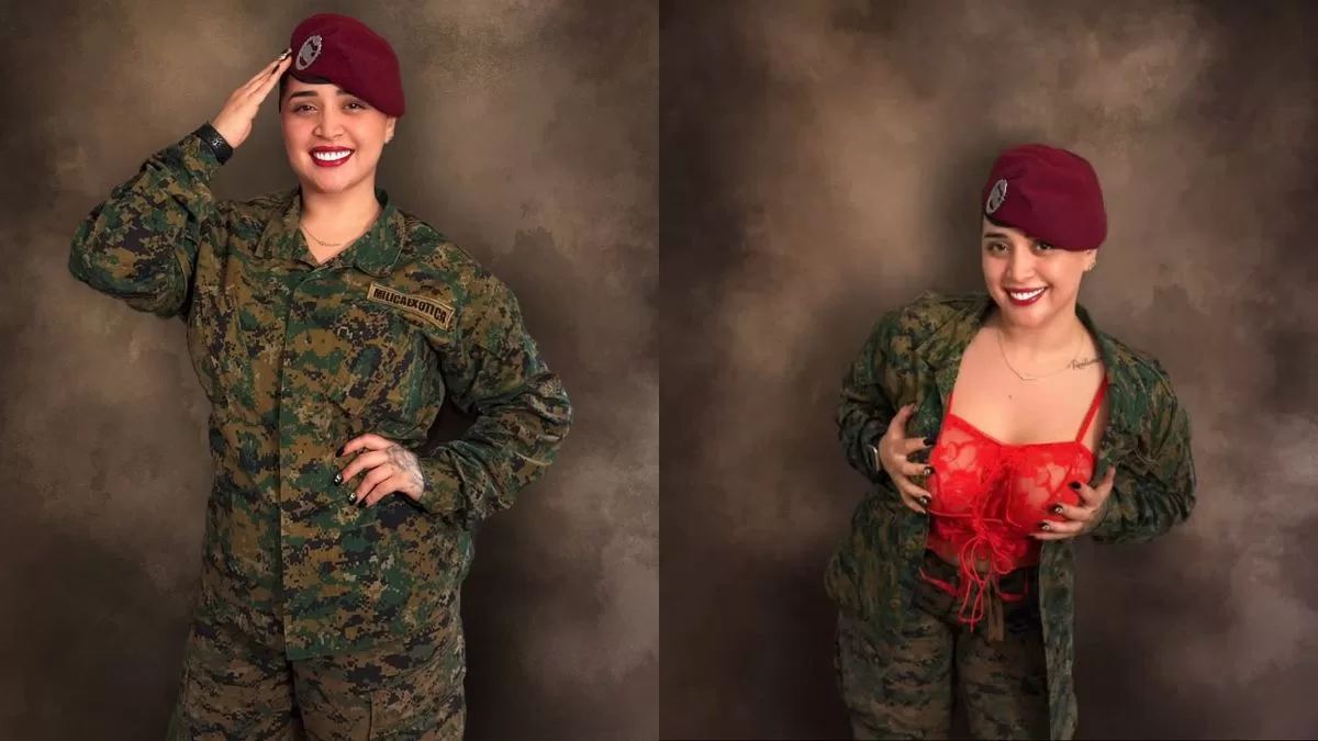 Se trata de la modelo Catalina Coloma, quien perteneció al Ejército de Chile, llegó al rango de cabo y actualmente trabaja como creadora de contenidos para adultos en Arsmate.